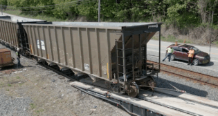 Energy company Iron Senergy is able to move empty railcars from a private siding to its mining facility 10 miles away over the road using Pattison Company LLC’s Truck Trailer System. Pattison’s