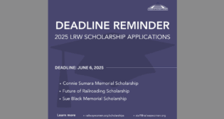 The League of Railway Women (LRW) is still accepting applications for three scholarships—the Connie Sumara Memorial Scholarship, the Future of Railroading Scholarship, and the new Sue Black Memorial Scholarship—for the 2025-26 school year. Applications are due June 6, 2025.
