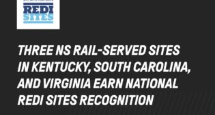 Norfolk Southern (NS) recently announced that a new wave of its rail-served industrial development properties has received national recognition for site readiness. Administered by the Site Selectors Guide, the REDI (Readiness Evaluation and Designation Initiative) Sites program “provides a rigorous, standardized evaluation process for site readiness across the U.S.”